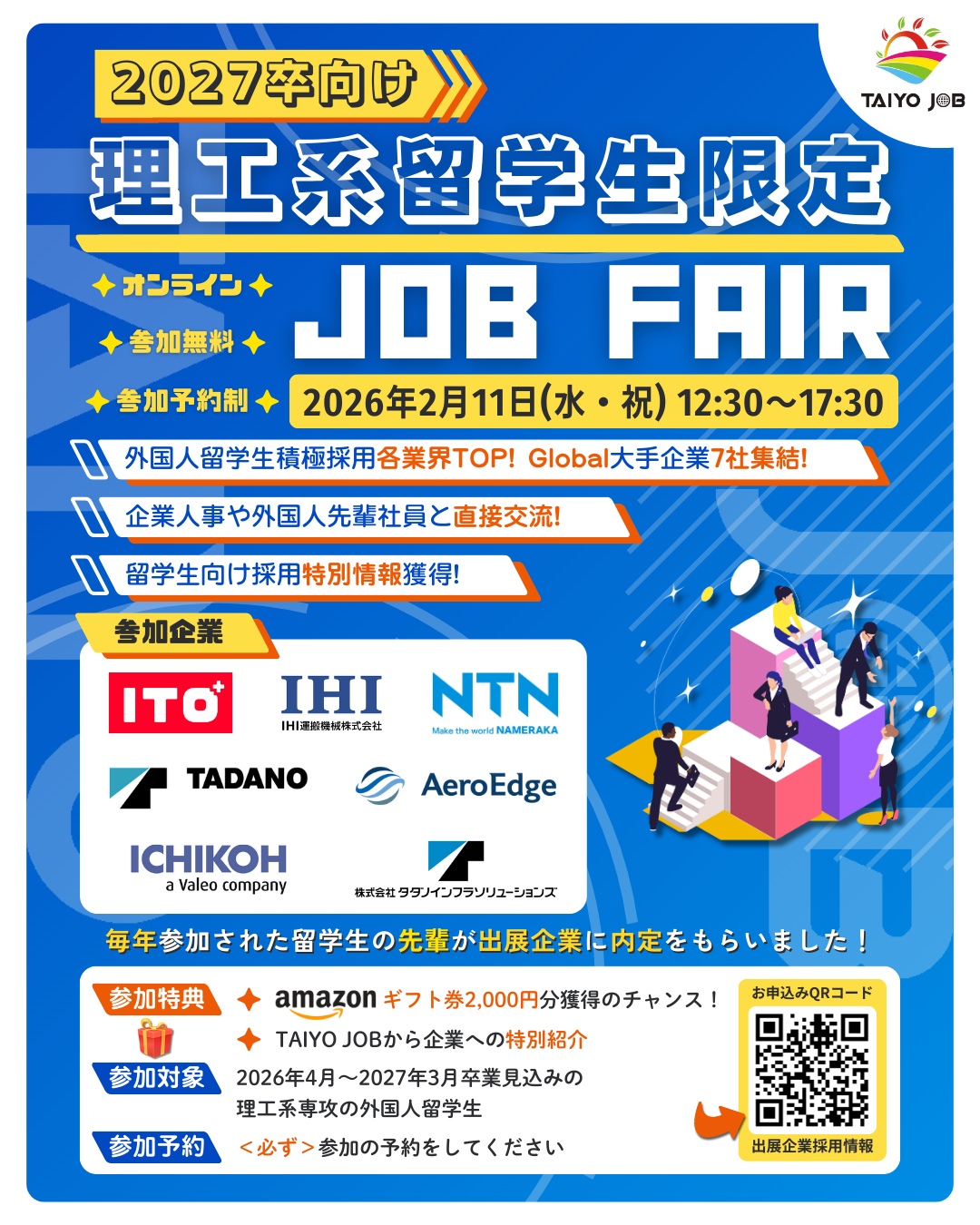 | 【参加対象】 | 2026年9月 or 2027年3月卒業見込みの理工系専攻の外国人留学生 |