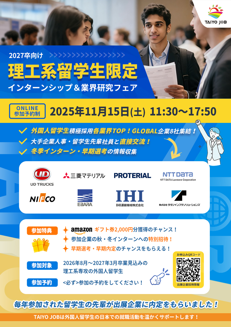 2027卒理工系留学生限定「インターンシップ&業界研究フェア」