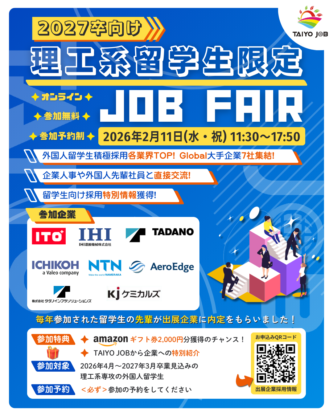 - 理工系留学生積極採用【グローバル企業8社】が出展される就活イベント!【オンライン開催】