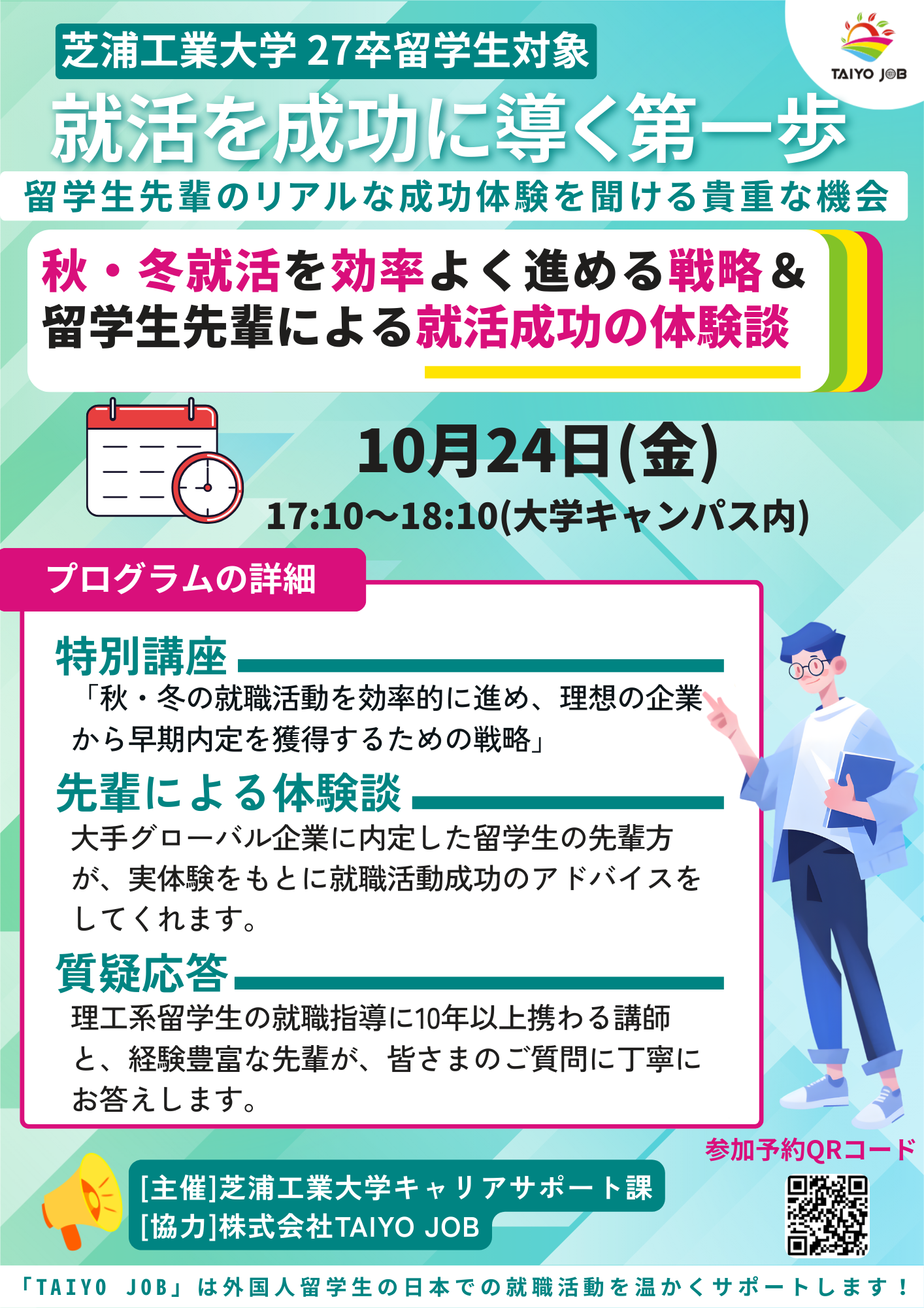 芝浦工業大学27卒『秋・冬就活を効率よく進める戦略&留学生先輩による就活成功の体験談』